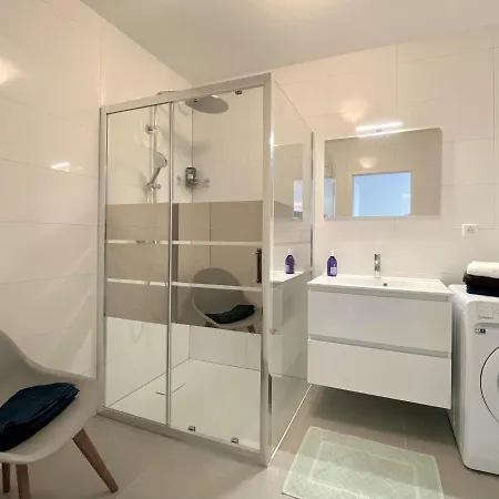 "Le 43" Terrasse, Jardin, 2 Garagesアパ-トメントアパ-トはウォ-クインシャワ- と個別のトイレのある1室のバスル-ムを提供しています.